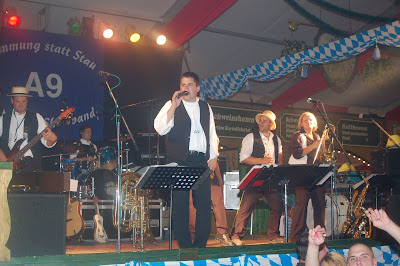 Die Band A9 ließ nichts anbrennen. Stimmungshit nach Stimmungshit prasslte auf das Publikum nieder. Die Bierbänke wurden einigen Belastungstets unterzogen.